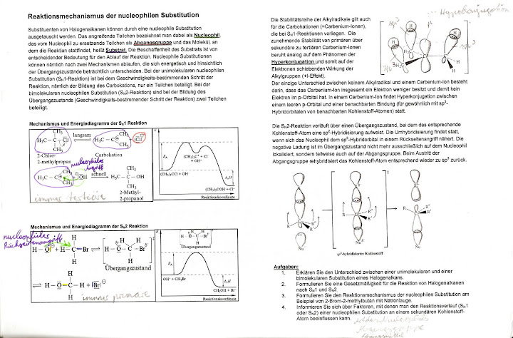 einer guten erklärung der reaktionsbedingungen (nucleophile, lösungsmittel, substrate) wär ich auhc nich abgeneigt. meine zettel dazu sind n bischen unübersichtlich und teilweise auch falsch glaub ich