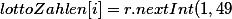 Was jetzt unsere Lottozahlen angeht, könnten wir dann einfach eine for-Schleife basteln, die jeweils die einzelnen Zelllen des Arrays beschreibt: